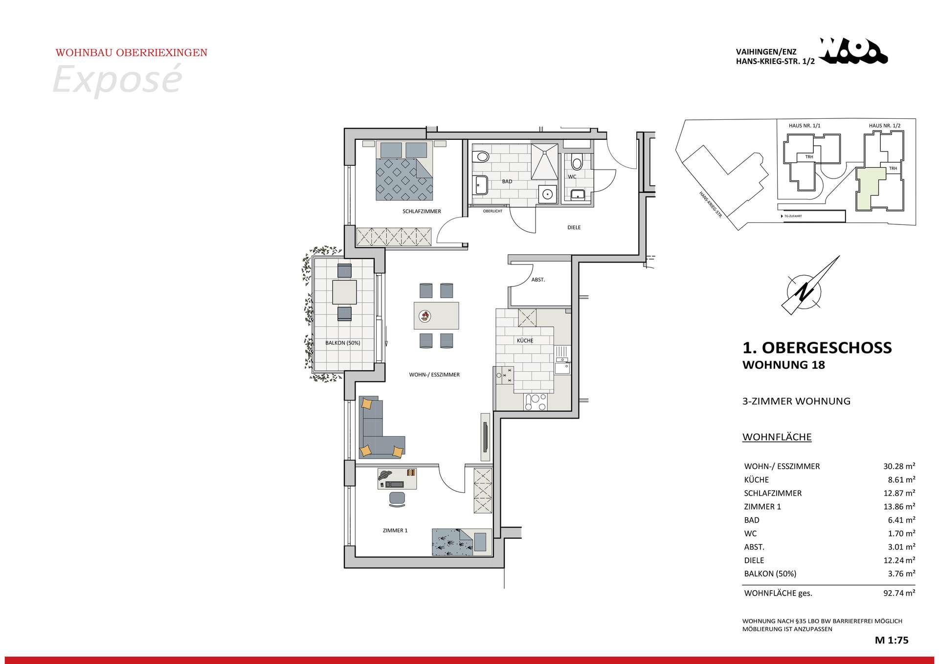 Diese charmante 3-Zimmer-Wohnung im 1. Obergeschoss des modernen neu zu errichtenden 14-Parteien-Hauses mitten im Herzen von Vaihingen/Enz wartet auf Sie! Der Balkon in Nordwest-Ausrichtung bietet den perfekten Ort, um den Tag entspannt zu verbringen oder ausklingen zu lassen. Der helle Wohn- und Essbereich schafft eine einladende Atmosphäre und bietet genügend Platz für Ihre individuellen Wohnideen. Im großzügigen Schlafzimmer genießen Sie erholsame Nächte. Das 2. Zimmer lässt sich wunderbar als Homeoffice, Hobbyraum oder Kinderzimmer nutzen. während das geräumige Tageslichtbad mit Dusche und WC Ihnen einen frischen Start in den Tag ermöglicht, können Ihre Gäste auf das separate WC gehen. Abgerundet wird das Angebot durch einen kleinen Balkon und einen nützlichen Abstellraum. Ein ideales Zuhause zum Wohlfühlen!