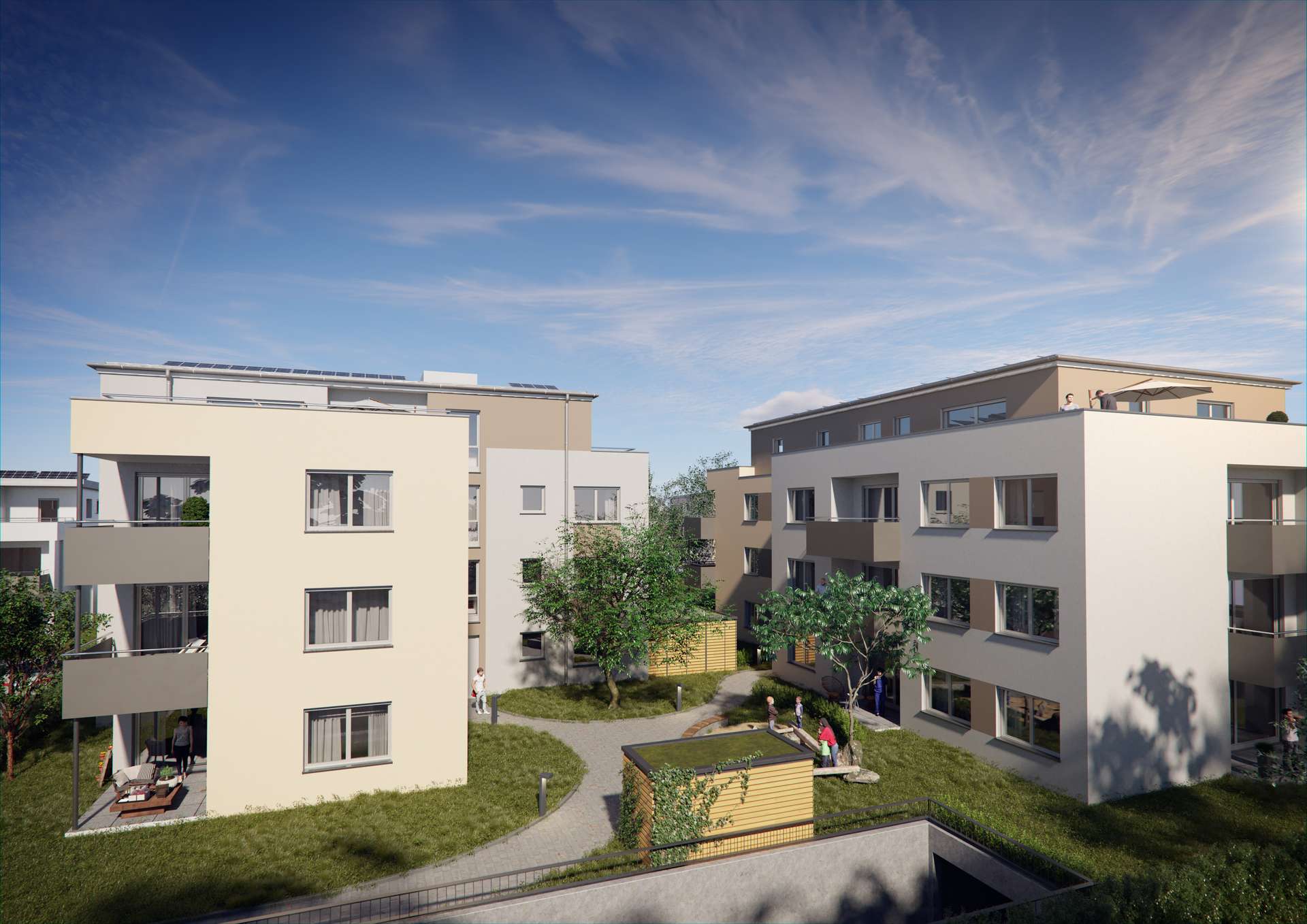 Alle Wohnungen überzeugen durch eine ideale Raumaufteilung und eine hochwertige Ausstattung. Der Bezug ist in 2026 möglich. Jedes Gebäude verfügt über eine Aufzugsanlage. Beheizt wird die Wohnanlage mit einer Luft-/ Wasserwärmepumpe gekoppelt mit Solar. Ihre Parkplatzsorgen werden Ihnen durch Tiefgaragenplätze genommen.
